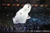 32支参赛球队旗帜入场,代表世界杯32强的巨型球衣随风飘动。历届世界杯主题曲响起,经典歌声中,往届世界杯吉祥物登场,勾起人们对于这一足坛顶级盛宴的回忆。