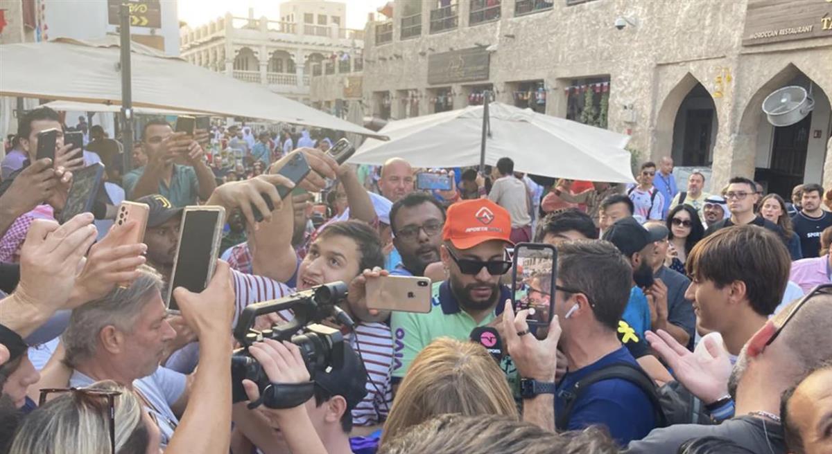 据阿根廷媒体infobae11月28日报道,当地时间11月27日下午,在卡塔尔首都多哈最受欢迎的瓦其夫老市场,一名长相酷似巴西球星内马尔的男子在人群中引发骚动,短短几秒钟内,数百部手机和电视摄像机将他包围。不过,这并不是内马尔本尊,而是他的模仿者。