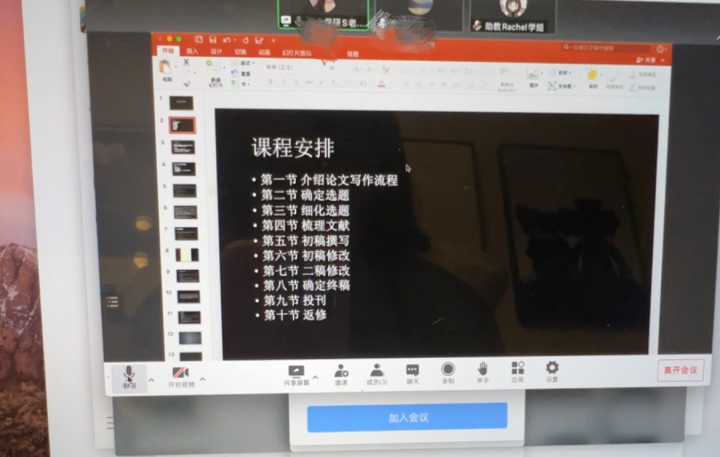 试听课以语音视频会议的方式进行,在1个小时的授课里,辅导老师全程未开启视频镜头。据辅导老师介绍,整个“辅导”课程共有10节,每次授课1小时,前几节主要会讲解文献查找资料技巧、期刊论文写作规范准则、研究方法等,后几节会负责帮助学生修改论文直至发刊。