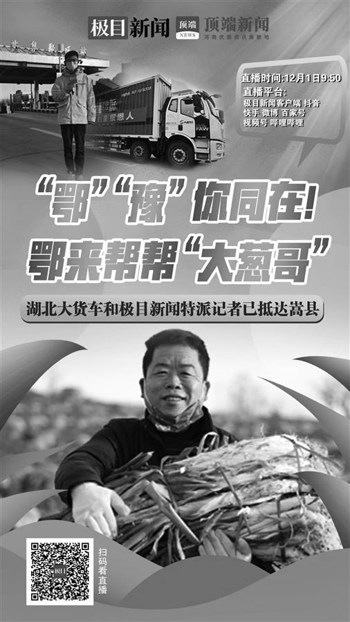为了感谢两年前的一次出手援助,为了实现“鄂”“豫”两地的爱心接力,极目新闻联手河南媒体顶端新闻,联动湖北爱心企业,前往河南嵩县,驰援曾无偿援助湖北10万斤大葱的“大葱哥”,采购当地滞销蔬菜。今晨6时许,湖北大道物流车已抵达“大葱哥”所在的嵩县境内。极目新闻特派记者已同时抵达,现场直播于9:50开启。