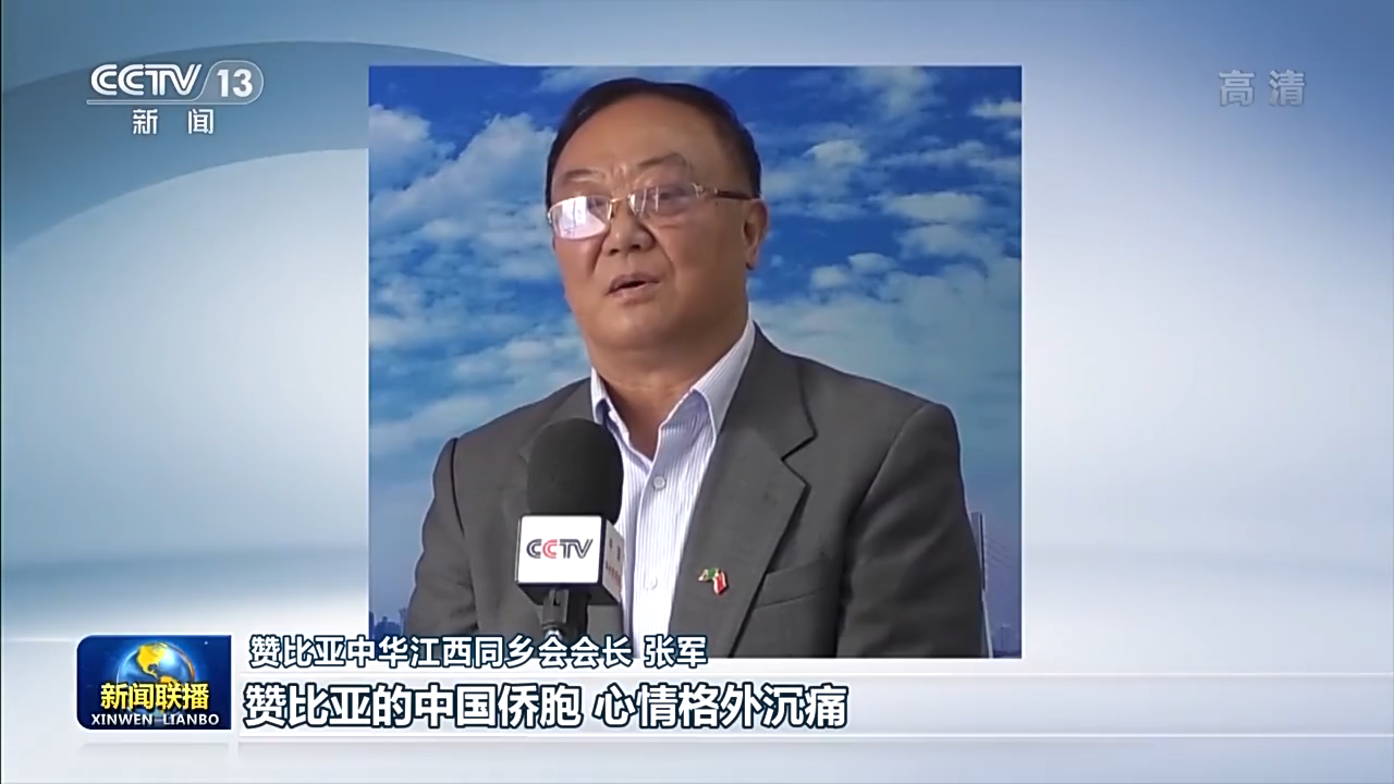赞比亚中华江西同乡会会长张军:赞比亚的中国侨胞心情格外沉痛,江泽民同志的光辉思想,崇高的思想品德,人格魅力永驻我们广大海外侨胞的心中。