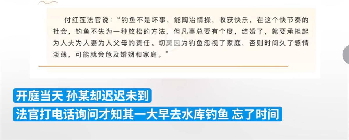 此事令人唏嘘,好好的一个家庭,因钓鱼解体了,着实可惜。这样的事应该并不多见,尤其是离婚案开庭时,丈夫仍因钓鱼迟到,可见对钓鱼是真痴迷。有网友说,“看来,嫁人不嫁钓鱼男,还真是这么回事。”