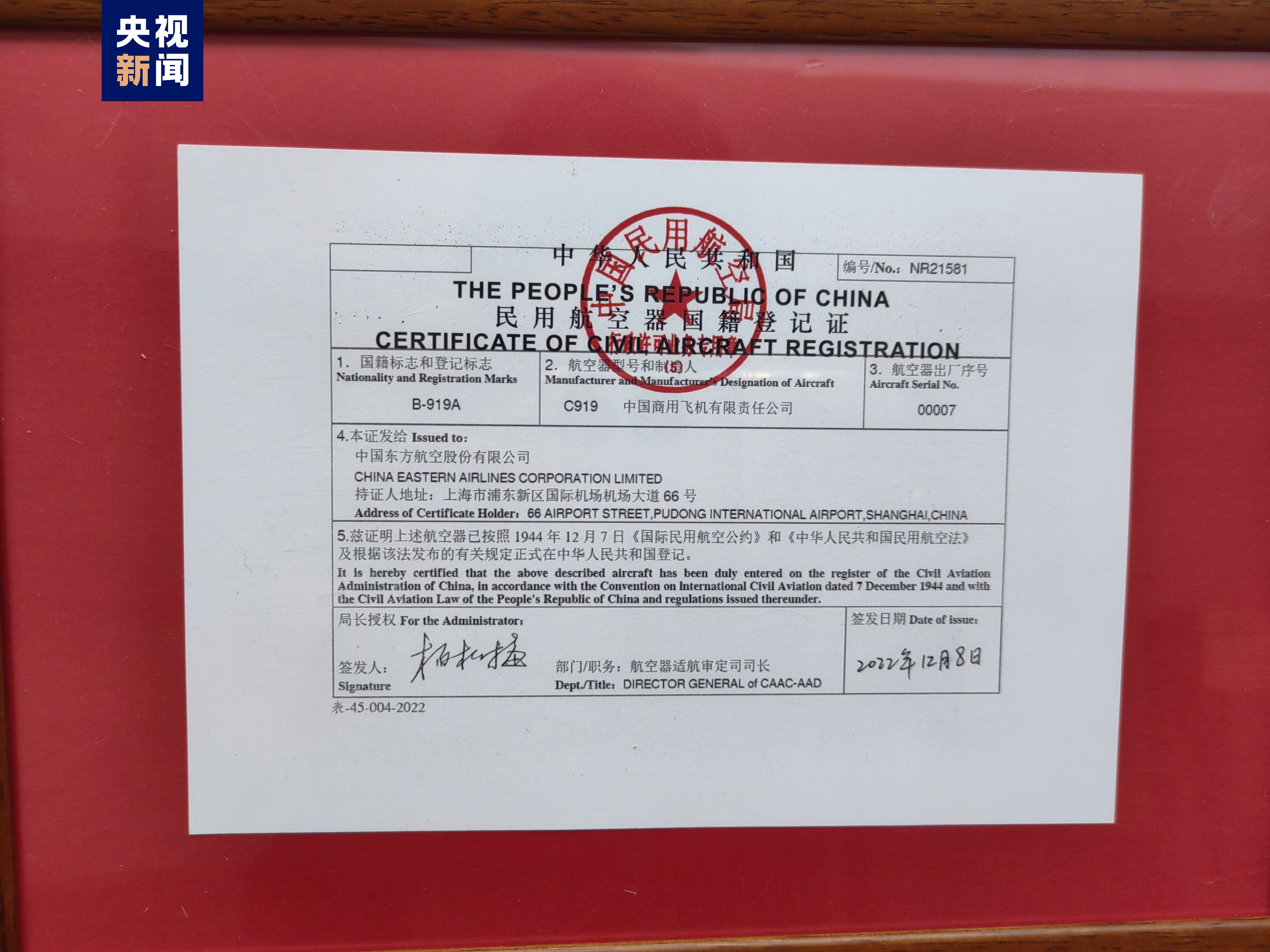 飞机注册号选用B-919A,B代表中国民航飞机,919和型号名称契合,A则有首架之意,凸显这一全球新机型、全球首架的非凡意义。