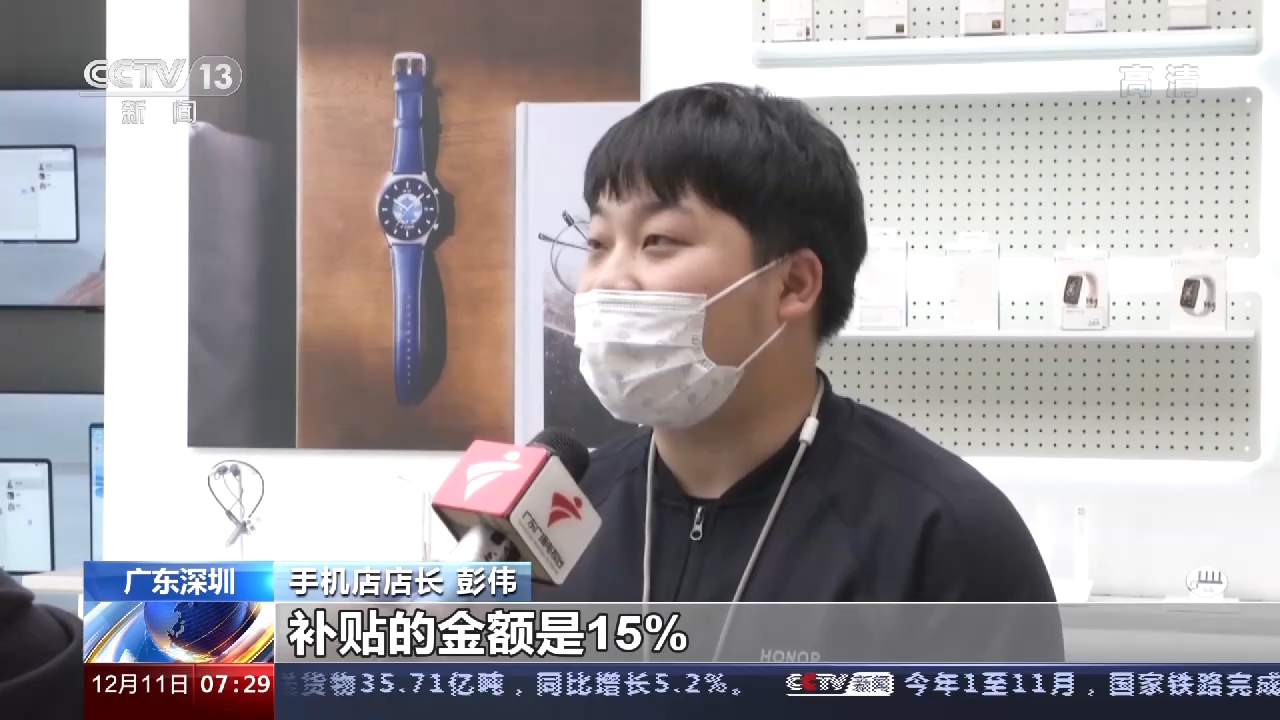 手机店店长彭伟:补贴的金额是15%,对客户的消费促进是非常大的,我们销售起码能增加50%的营业额。