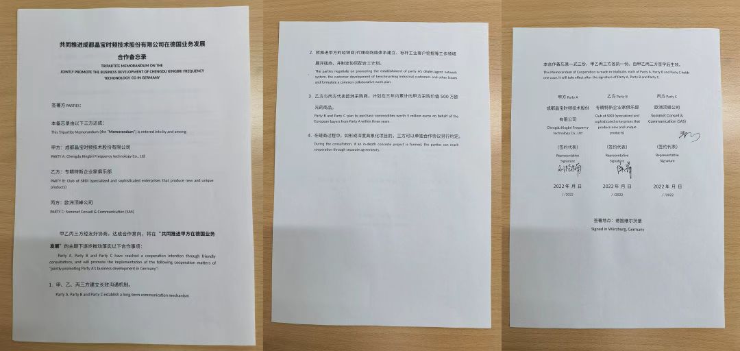 成都晶宝时频技术股份有限公司拿到了500万欧元的采购意向订单。