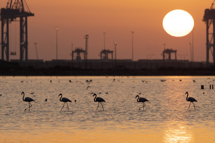 每年冬季,大批火烈鸟飞抵埃及北部的福阿德港自然保护区觅食过冬。