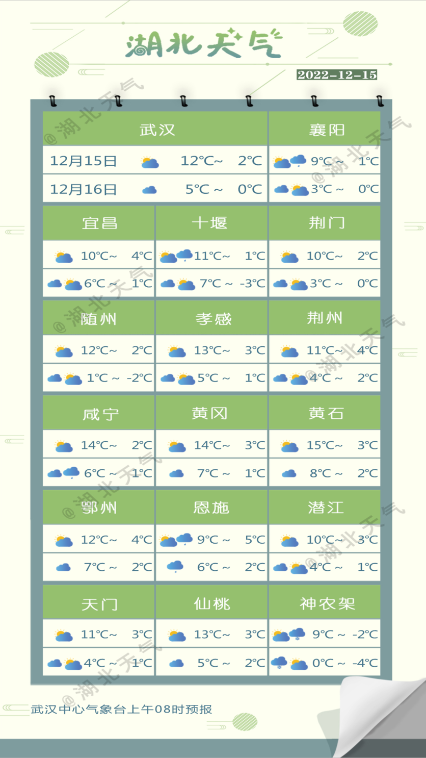 十堰、襄阳、恩施、宜昌等西部地区较昨天降温明显