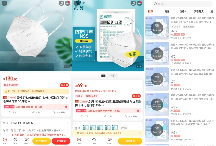 天目新闻发现,随着消费需求激增,市面上N95口罩普遍出现“缺货”“无货”情况,价格也是一路走高,甚至还产生了“鱼龙混杂”的现象,不少消费者直呼上当。