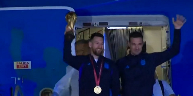 【环球网快讯】据阿根廷体育新闻网站“Tycsports”20日报道,在2022年卡塔尔世界杯夺冠后,阿根廷队乘坐的飞机抵达阿根廷首都布宜诺斯艾利斯。