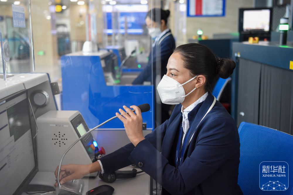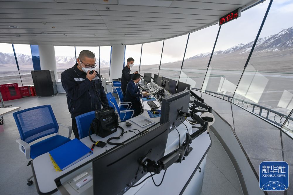 12月19日,在塔什库尔干红其拉甫机场,塔台工作人员进行通信测试。新华社记者 丁磊 摄