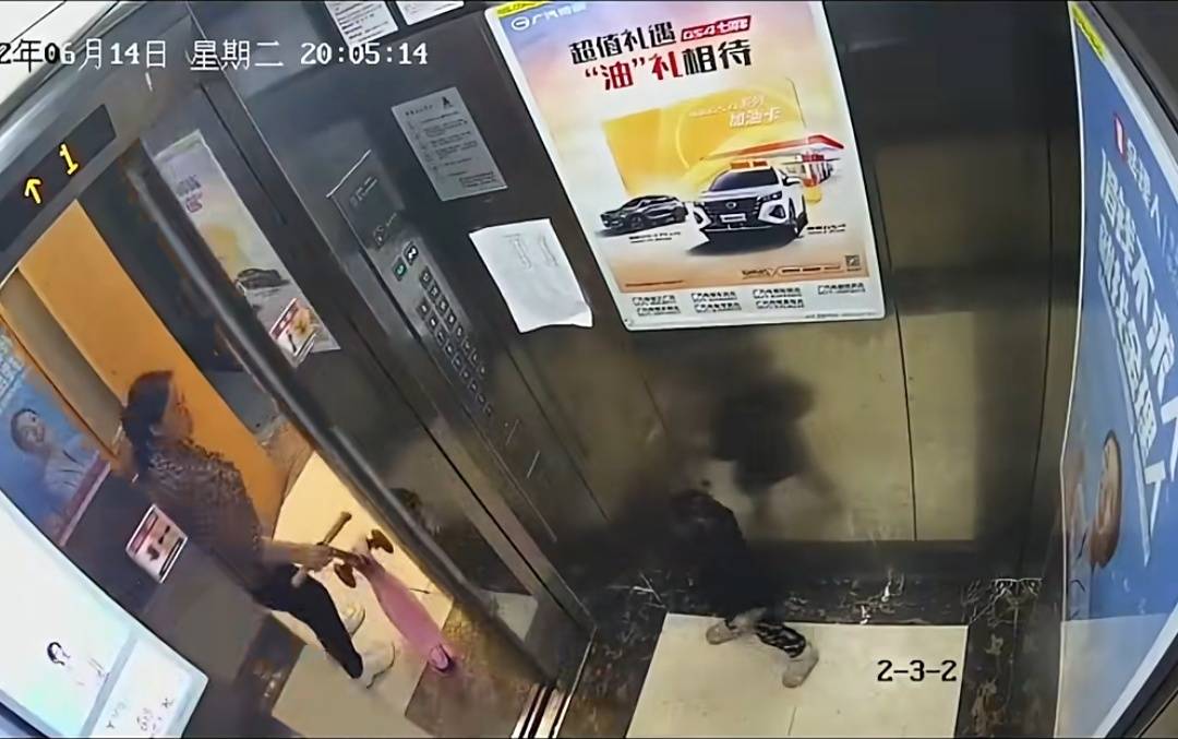 保姆将孩子遗留电梯的瞬间(监控截图)