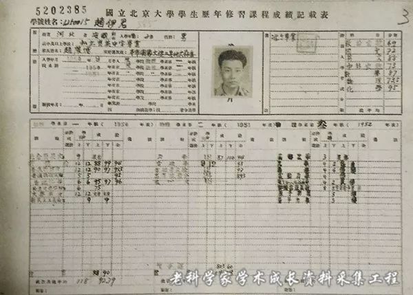 赵伊君在北京大学的修习课程成绩记载表