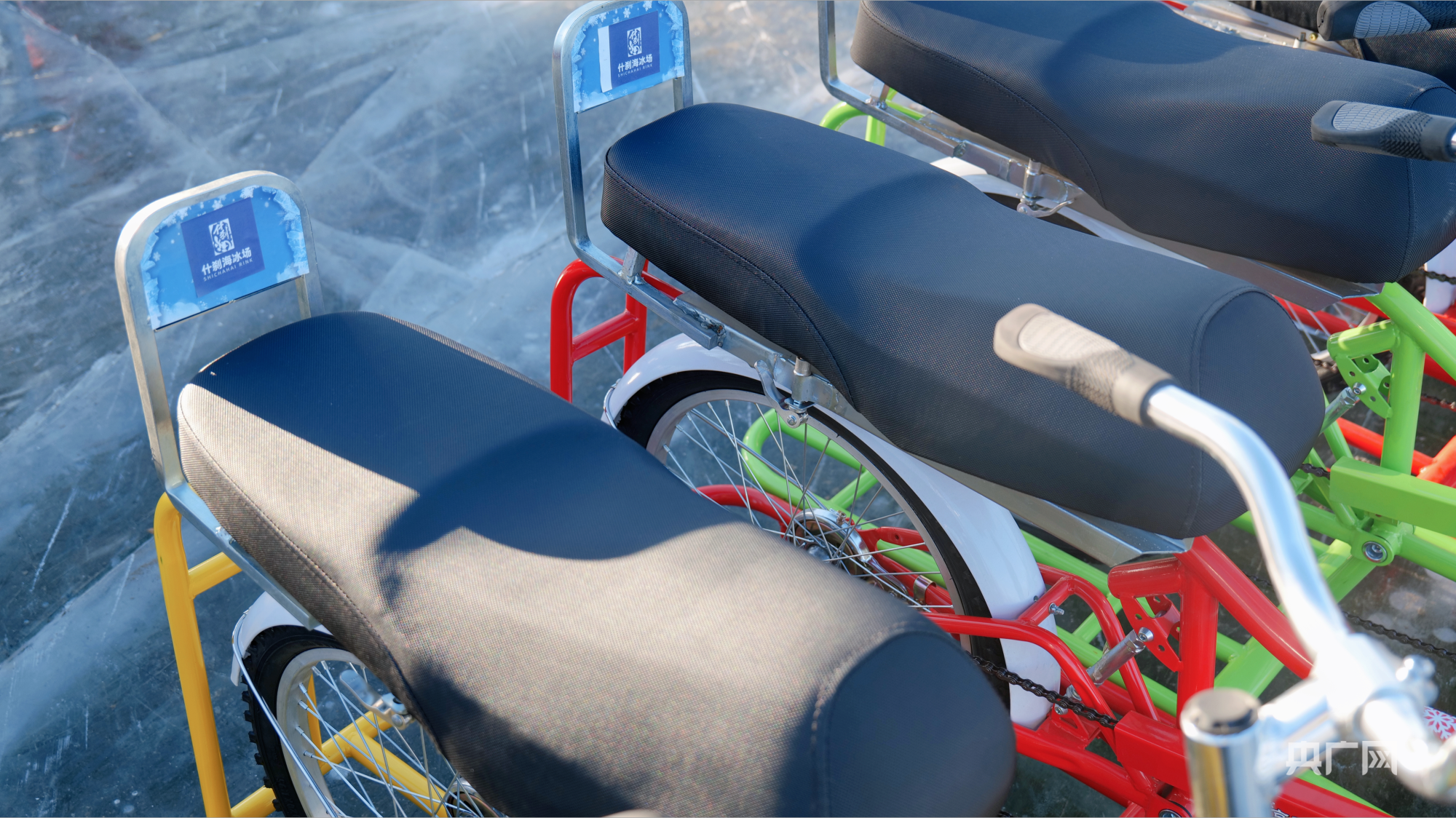 冬日暖阳洒在冰上自行车上(央广网记者朱冠安摄)