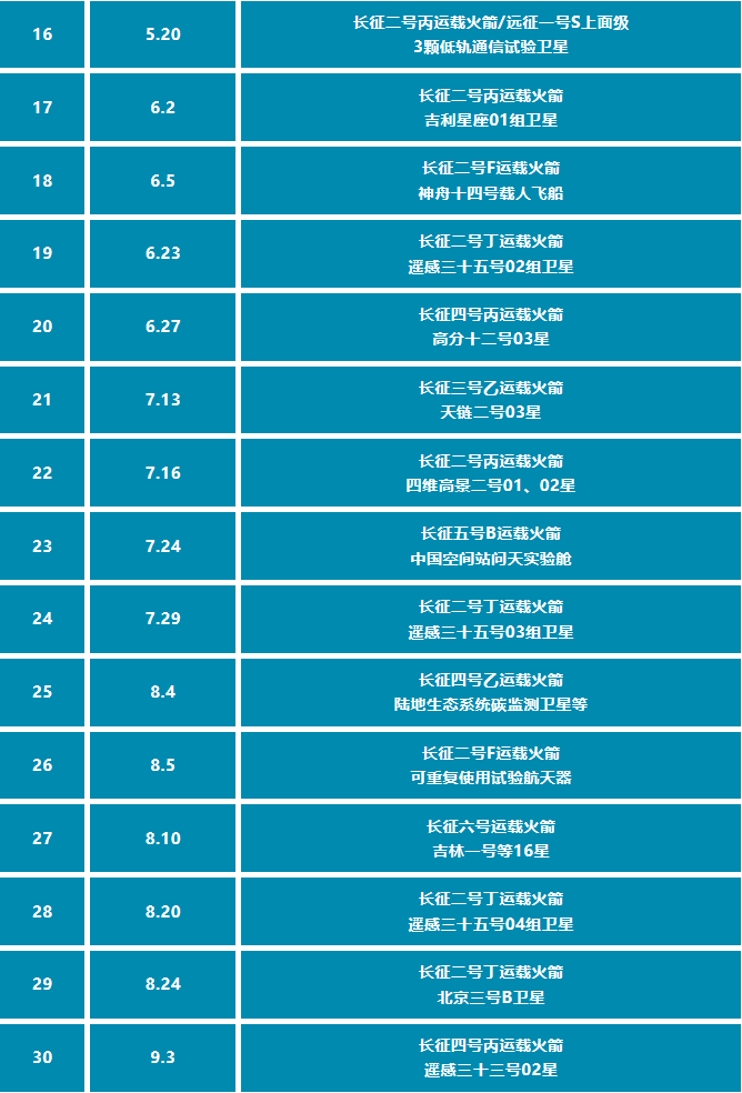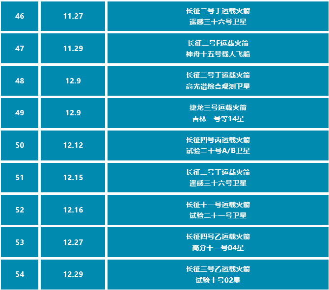 航天科技集团抓总研制运载火箭2022年发射记录
