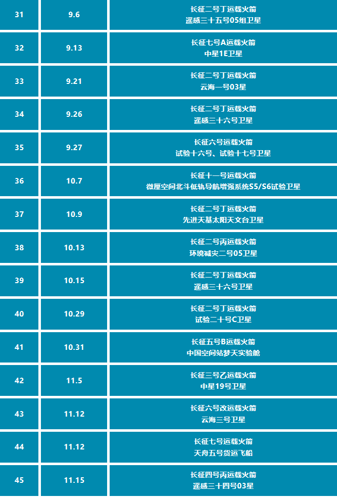 这一年,我国首型固液捆绑运载火箭长征六号改首飞成功;长征八号运载火箭将我国一箭多星纪录刷新至22颗;捷龙三号运载火箭首飞成功,实现了我国运载火箭从海上冷发射到海上热发射的跨越。