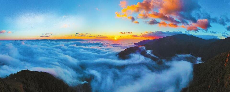 冬季是云南省玉溪市新平彝族傣族自治县哀牢山观赏云海日出的最佳时节。清晨时分,当大地还沉浸在安静甜美的梦乡时,这里早已有了烟波浩渺的云海奇观,茫茫云雾、层层叠叠,蔚为壮观、宛若仙境。(通讯员刀雪锋摄)