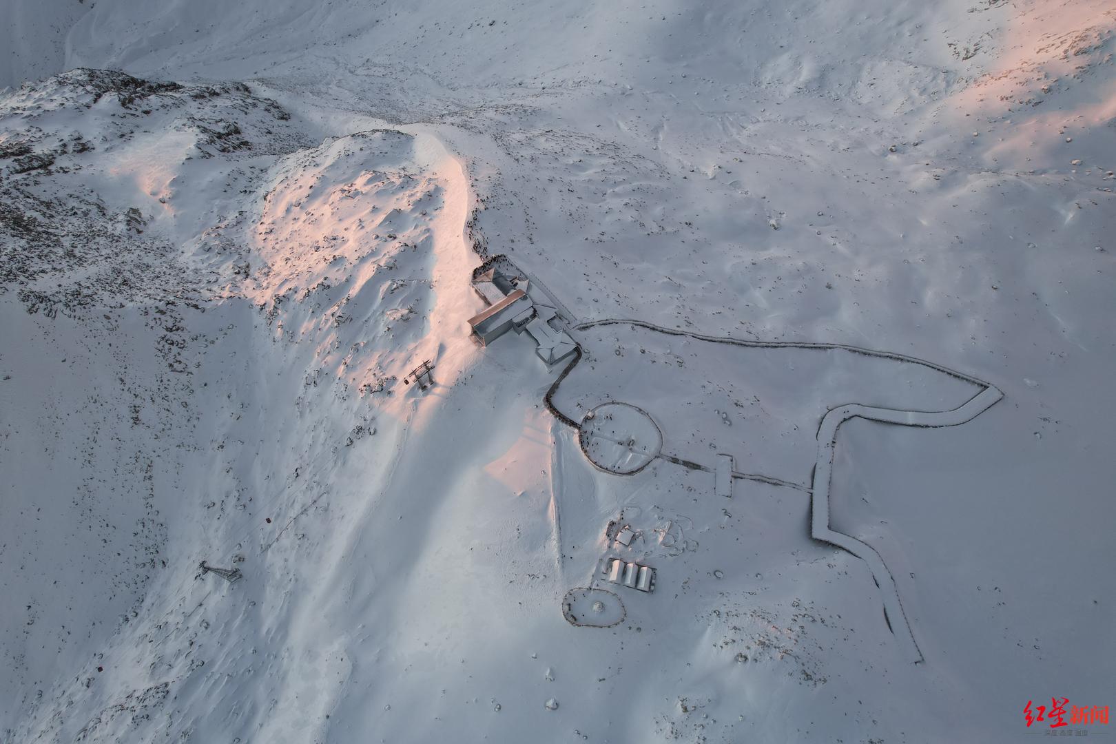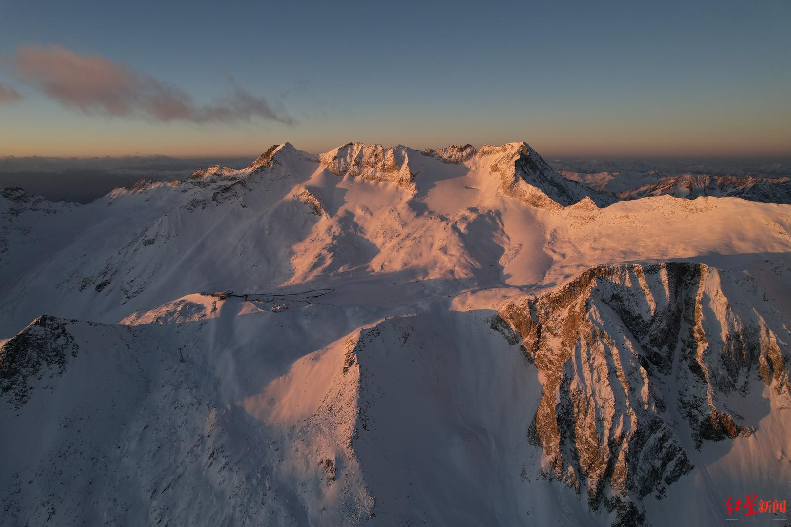 ↑达古冰川海拔4860米平台,迎来新年第一缕曙光