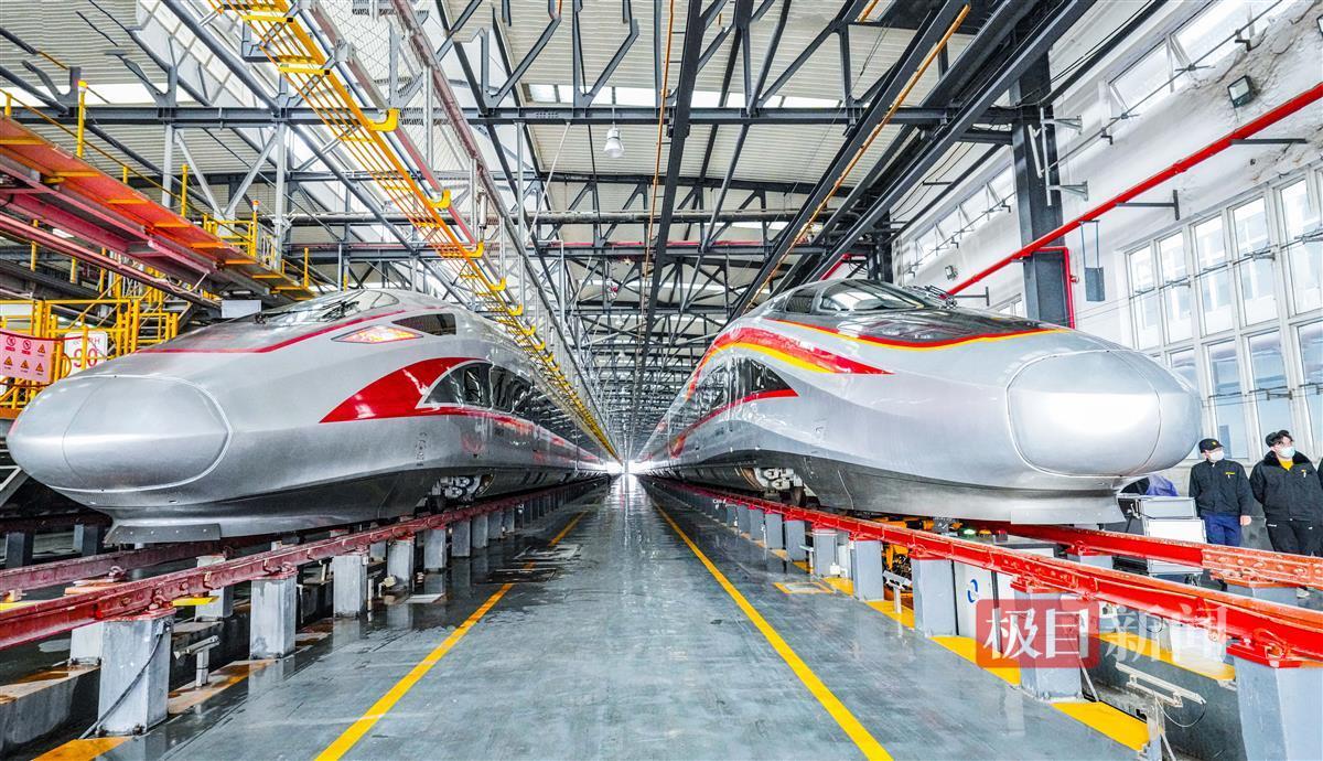 1月7日,2023年的春运大幕将正式开启。春运前夜,华中最大的动车组检修基地——武汉动车段内,200余组动车组列车已整装待发。极目新闻记者了解到,去年,中国铁路武汉局集团公司首次配属了8组智能复兴号高铁,今年是它们首次加入春运运输,将为旅客带来更加优质的乘车体验。