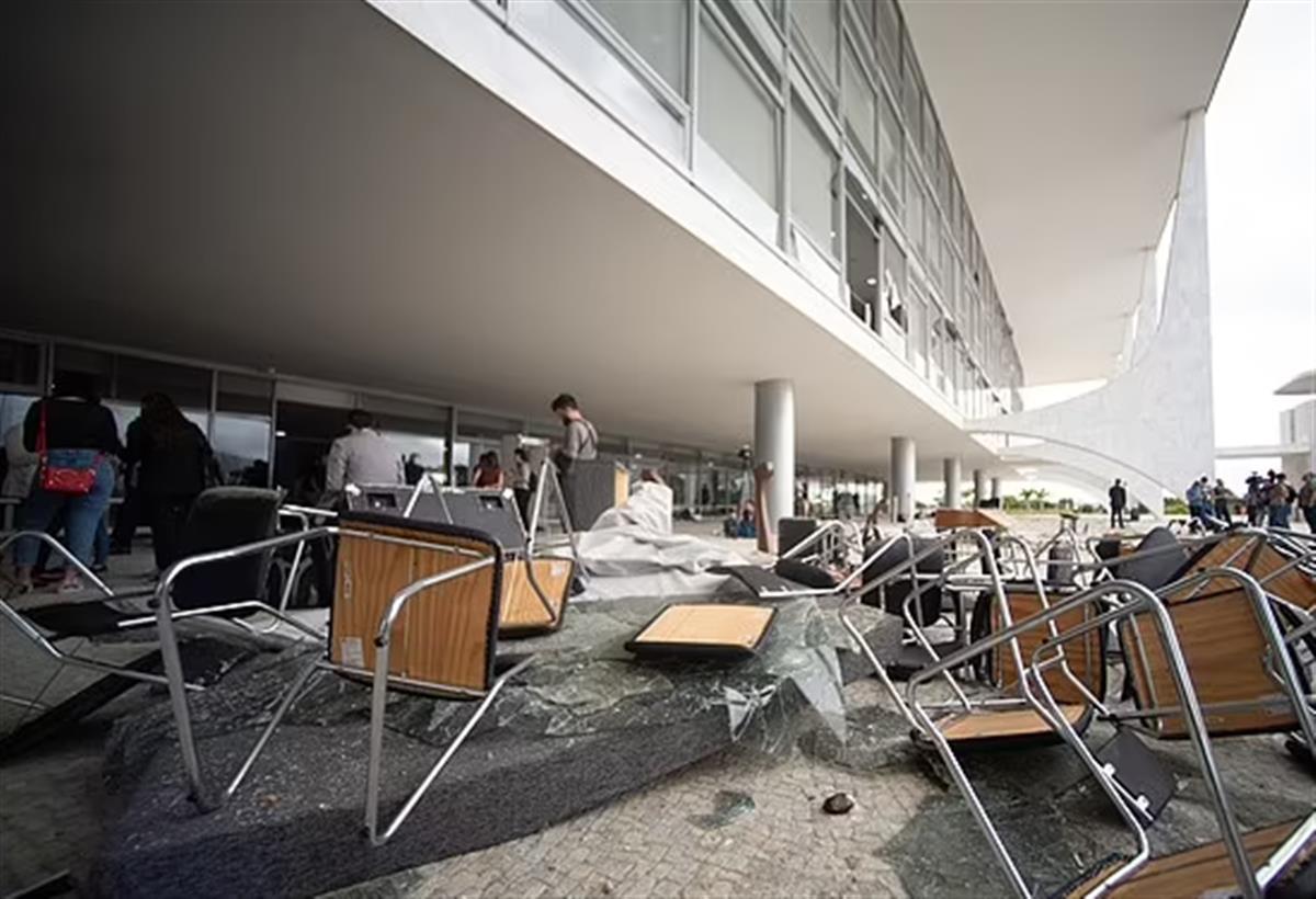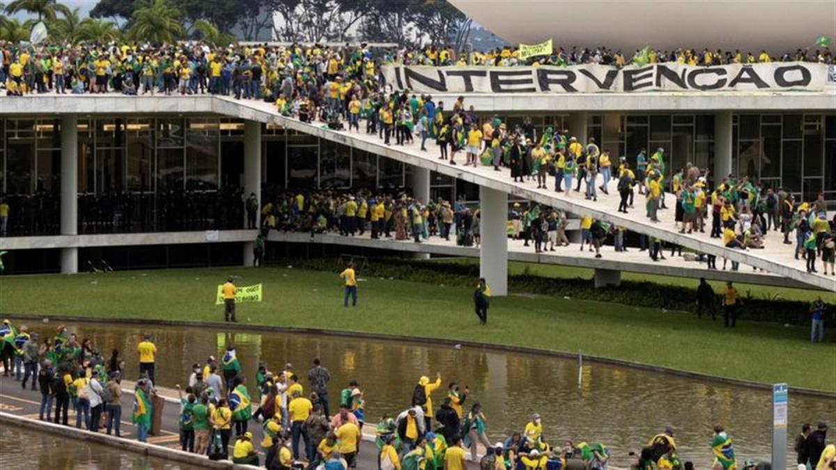1月8日,巴西右翼前总统博索纳罗的支持者暴力冲击巴西国会大厦、总统府和联邦最高法院大楼,砸毁建筑内的设施,以示对新任总统卢拉的抗议。