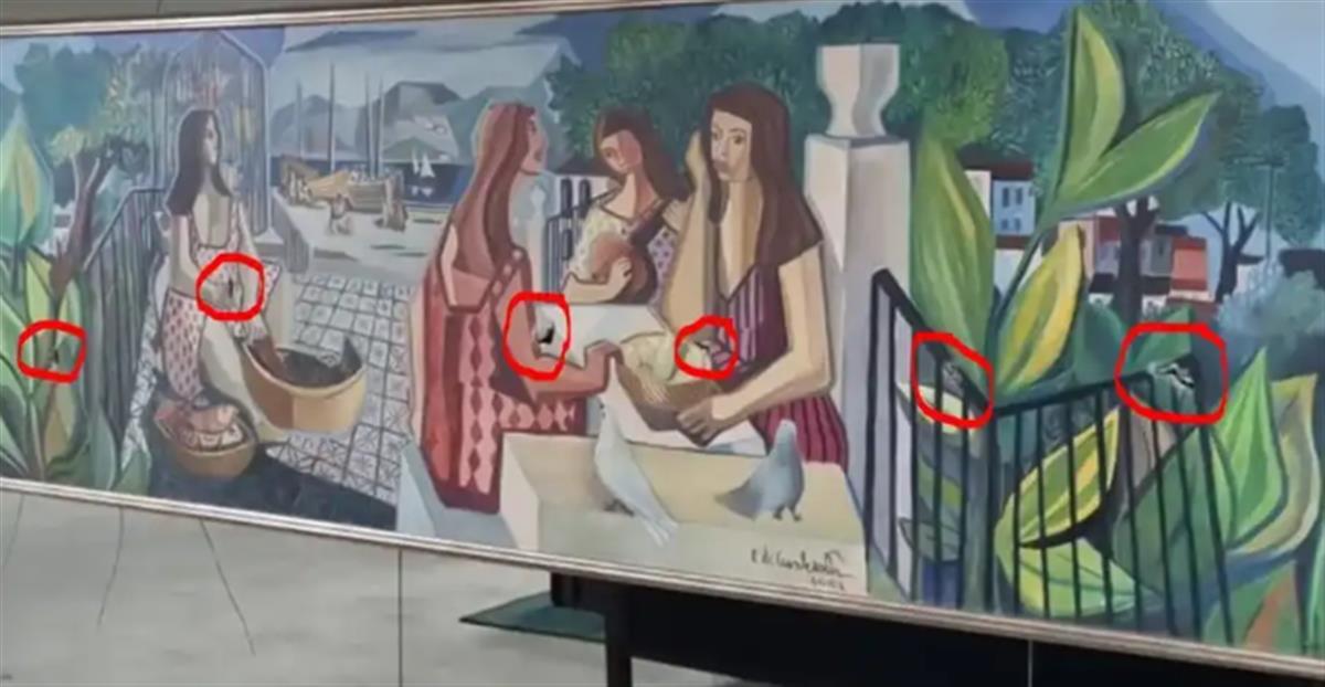 在巴西总统府三楼大厅陈列的绘画作品《混血儿》(As Mulatas)被认为是巴西现代主义画家迪卡瓦尔康蒂最具代表性的作品之一,其市场估值约为800万雷亚尔(约合人民币1042万元),骚乱过后这幅画上出现了7处刀割痕迹。