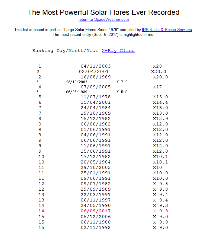 有媒体称,太阳4天内发出两次X级耀斑,几天后指向地球,或引发强烈地磁暴。2003年10月底科学家目睹了一场有记录以来最大的太阳耀斑爆发。耀斑级别达到X28,致使瑞典南部的5万户居民短暂失去电力供应。
