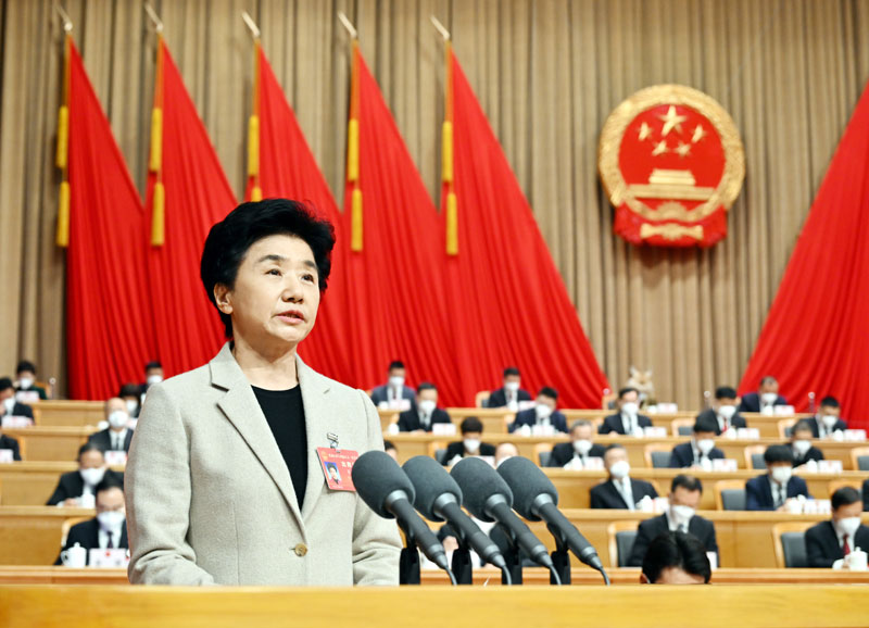 今年1月12日,梁惠玲作政府工作报告(图片来源:黑龙江省政府官网)