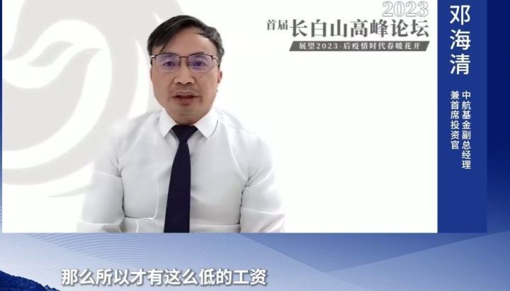 2023长白山高峰论坛开幕前夕,中航基金副总经理兼首席投资官邓海清在接受采访时,谈到一些年轻人抱怨收入太低不敢消费。