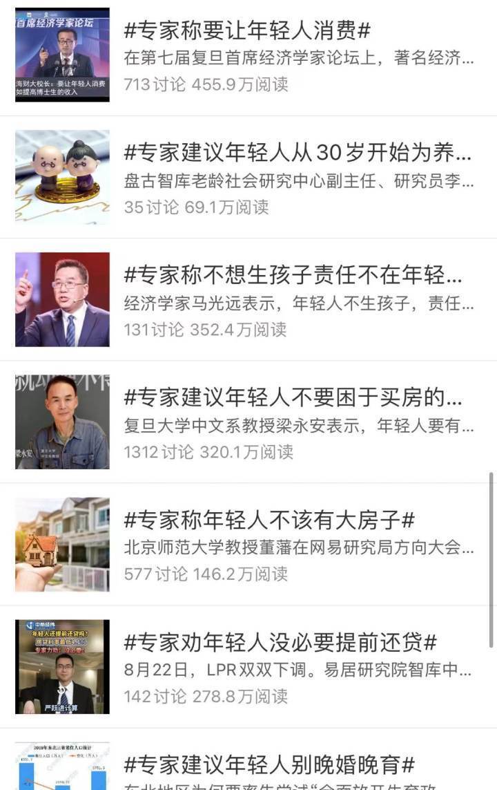 橙柿注意到,近年来关于专家对年轻人的建议,频频上热搜被网友广泛讨论: