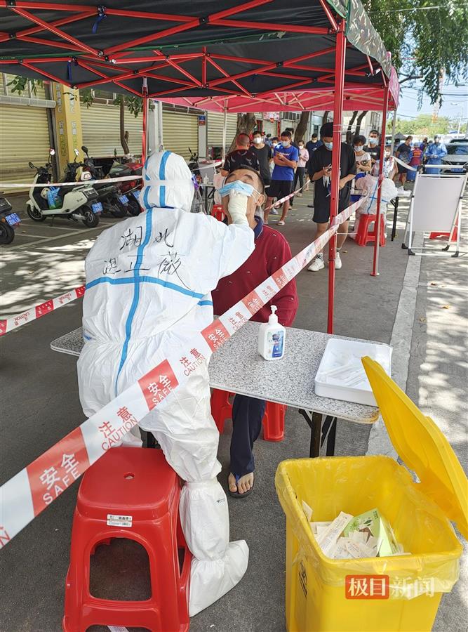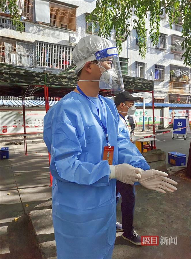 “张大嘴,说‘啊’。”在光明社区的临时核酸采样点,湛正薇的防护服后背写着“湖北湛正薇”。顶着南方的烈日高温,她每天完成200多位居民的核酸采样任务后,脸颊上总是沾满成股下流的汗水,背上则湿透。