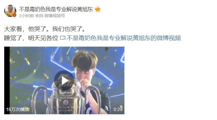 知名星际争霸解说黄旭东发布微博:“这一刻我等了20年,今天终于可以昂起头大声的跟所有人说:我们是冠军!老子玩的是星际争霸!这世界上最难的电竞游戏。”