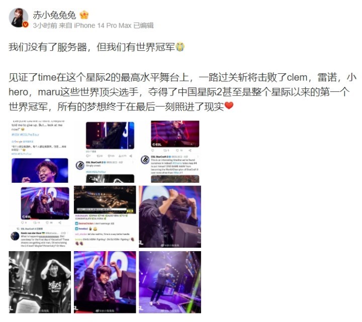 《人民电竞》凌晨4点发布李培楠夺冠的新闻后,很快被熬夜观看比赛的中国粉丝转发了上千条:“他等这一刻等太久了!中国星际等这一刻也等太久了!”