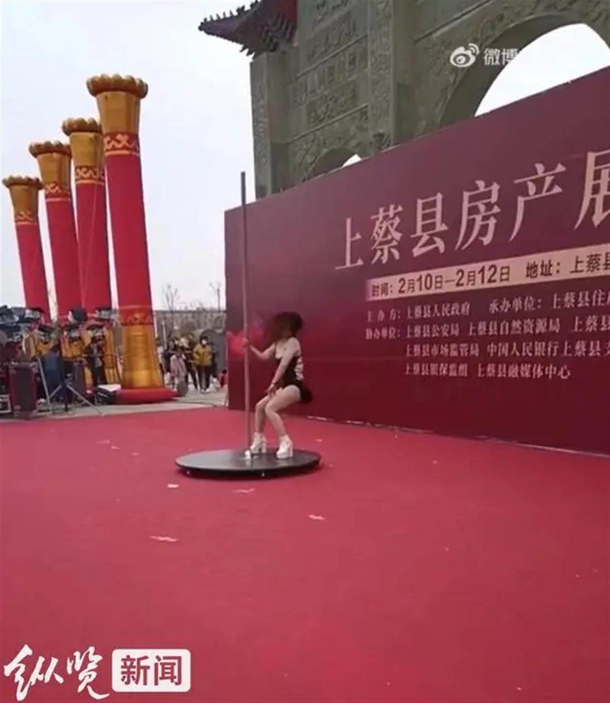 根据媒体调查,这是一场上蔡县人民政府主办的房产展销会,当地官方报道,县长出席开幕式并宣布开幕等。网友质疑:政府主办的活动中,衣着暴露女子表演钢管舞不合适。