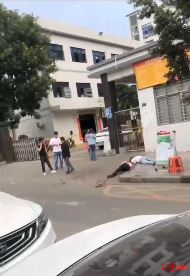 2月13日,网传东莞长安镇上角社区某电子厂发生伤人案的相关视频,视频中有两人倒地,一名黑衣男子站在旁边,随后该黑衣男子被警方控制。