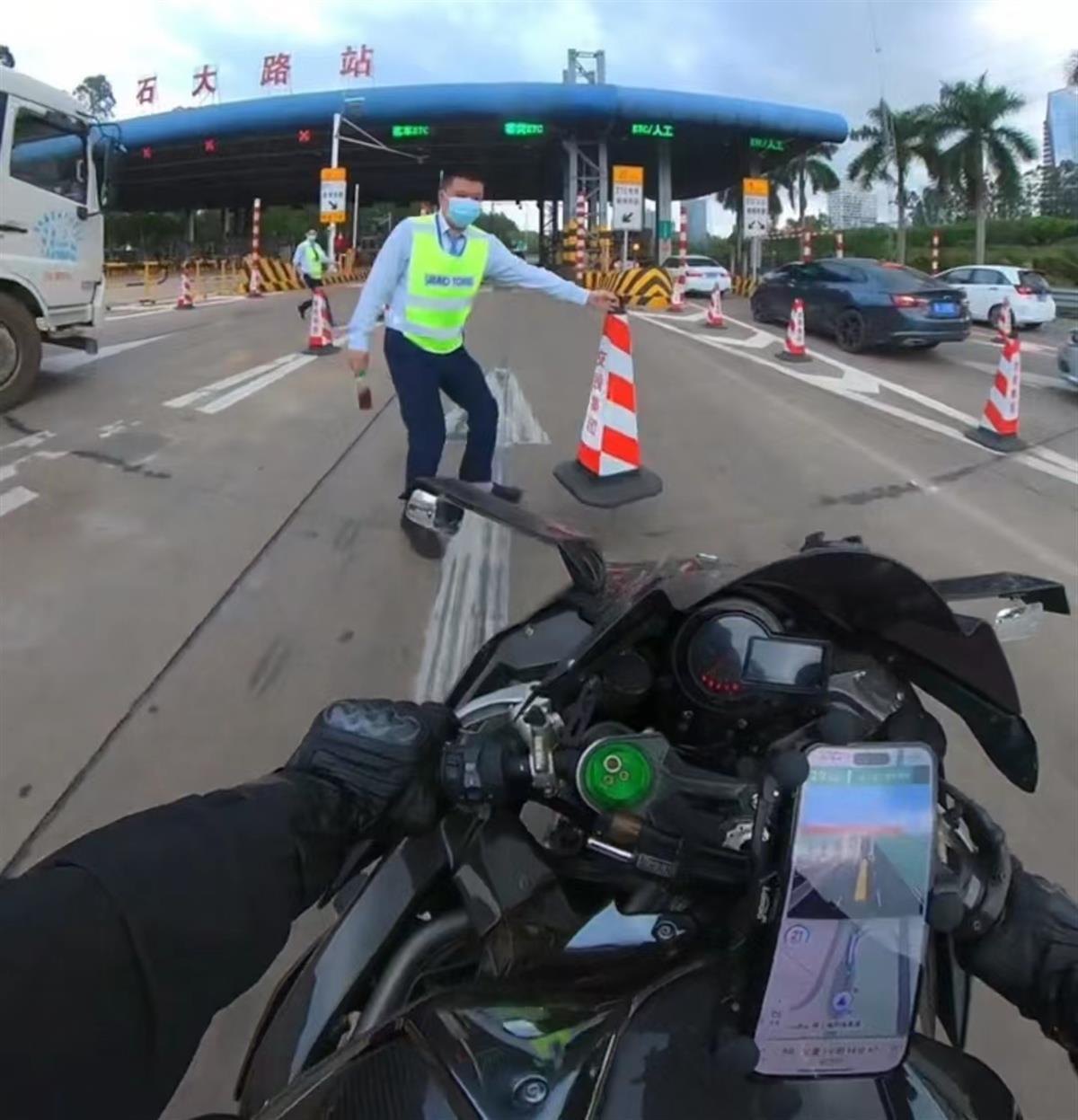 2月13日10时23分,博主“苏乞儿!”在社交平台上发布了一则视频内容显示,一辆摩托车准备从东莞石大路收费站进入高速时,被两名身穿绿马甲的工作人员阻拦。摩托车继续前行后,工作人员将锥形筒放在车辆前方,导致摩托车摔倒。