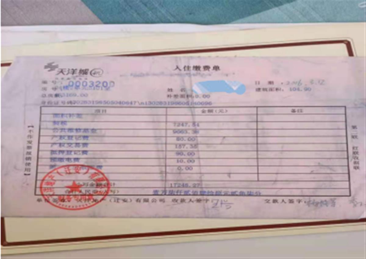 据该小区维权居民代表尹先生提供的书面投诉材料称,该小区始建于2012年,分一期和二期,合计6000余户,截止到2018年全部交房完毕。其中4000多户房屋契税、住房专项维修基金在交房时已上交天洋地产,截止到2022年6月天洋地产未将代收业主的大部分契税、住房专项维修基金上交迁安市税务局、迁安市住建局。