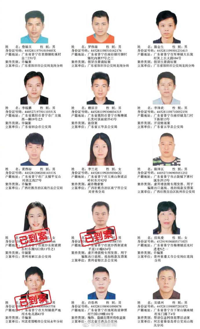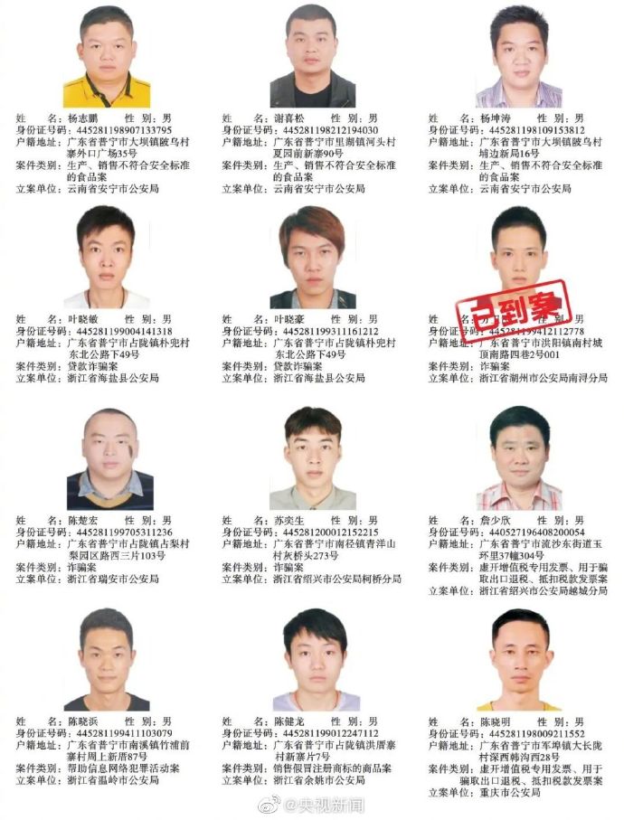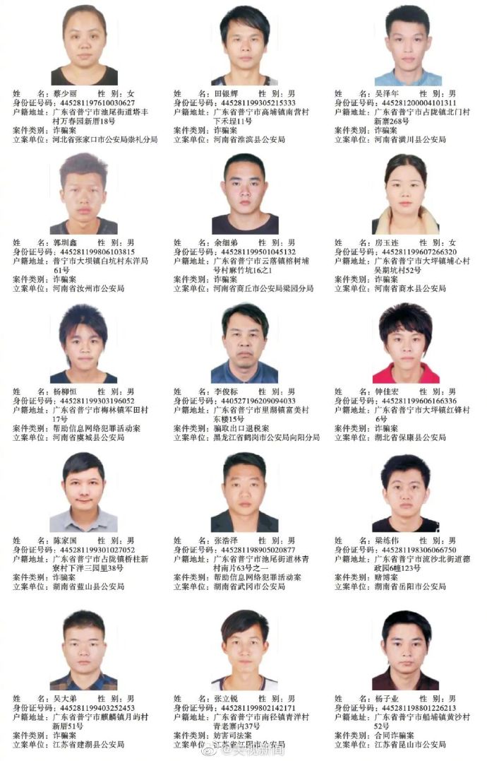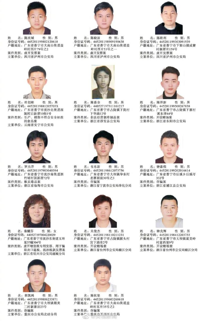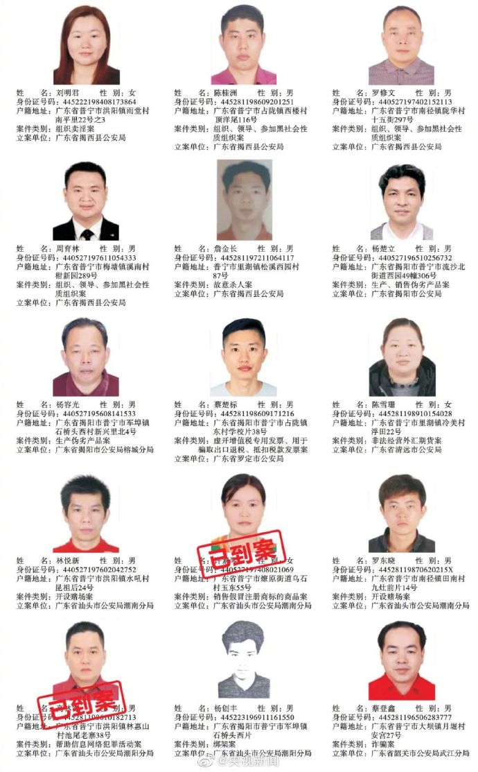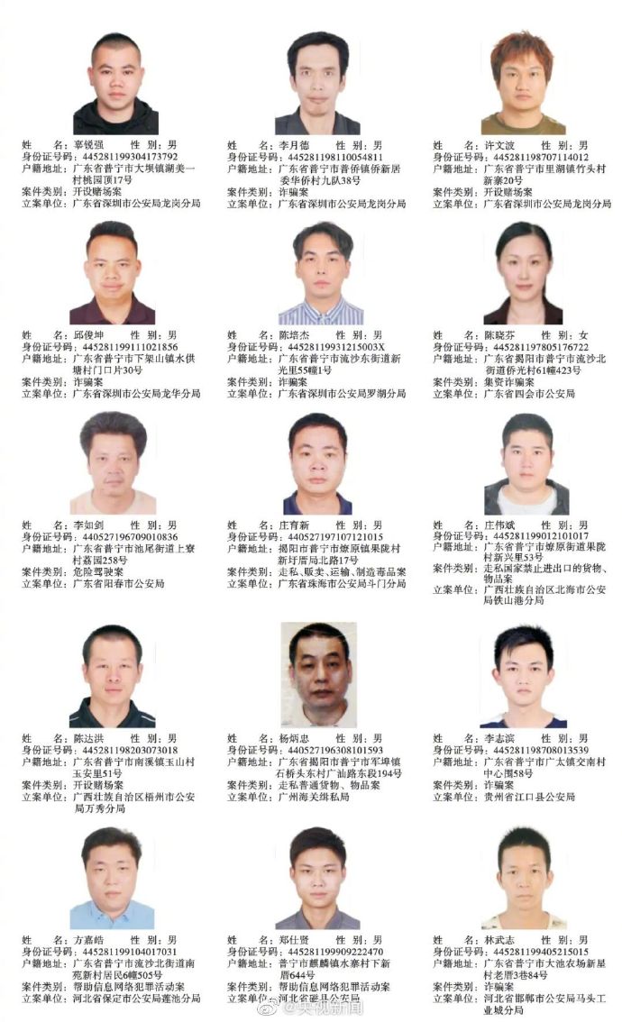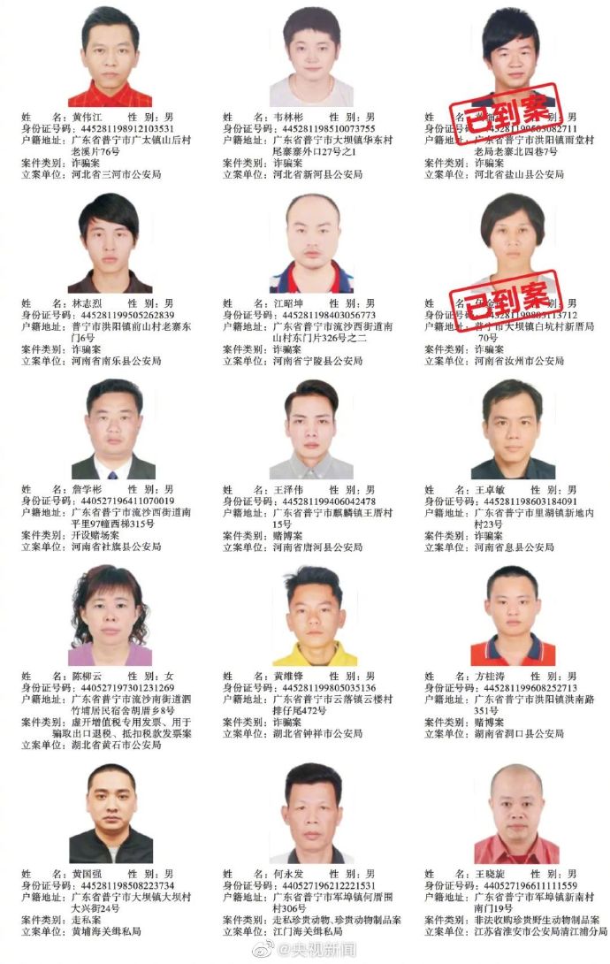 广东普宁公布200余悬赏通缉犯照片,每抓1人奖励5千元