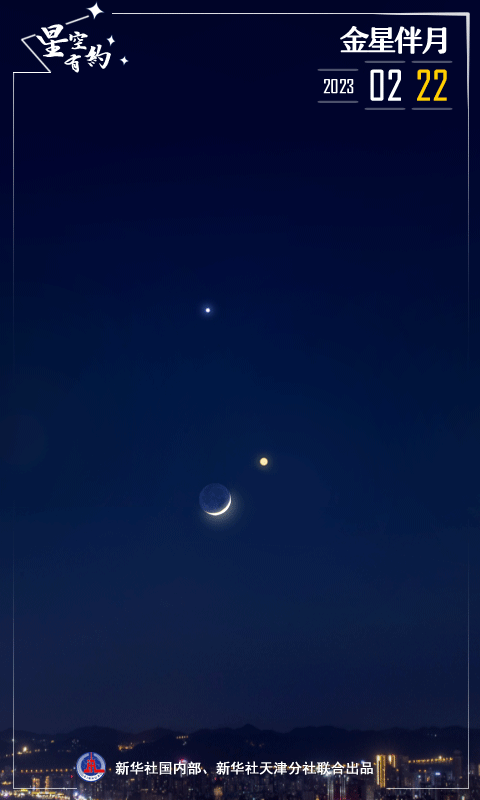 天文科普专家介绍,2月22日傍晚,西南方低空将上演“浪漫一幕”——明亮的金星与极细的月牙近距离相伴,赏心悦目,煞是好看。金星伴月是最好看的“星月童话”,这是因为通常情况下,金星和月亮是夜空中最亮的两个天体,且二者相伴时,月相一定是如钩般的蛾眉月或残月。