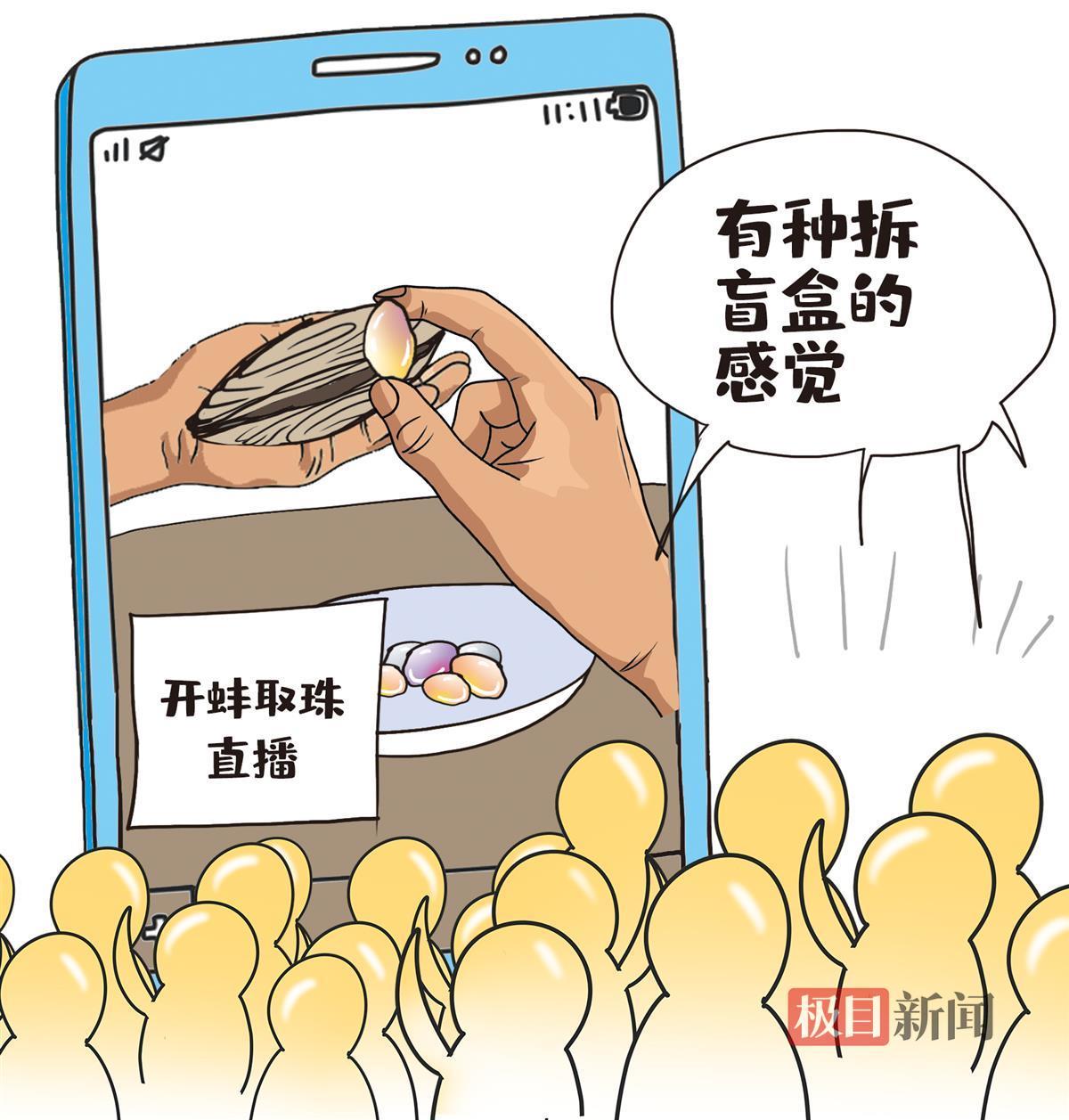 珍珠开蚌线上成热潮,记者探访发现,线下也有一些饰品店专门开设了开蚌取珠的体验项目,做现场珍珠开蚌生意的店铺也吸引了不少买家。顾客可以直接自己体验开蚌,用刀撬开蚌壳后再把蚌内的珍珠取出来。随后,店里的工作人员会帮忙清洗珍珠,顾客再DIY饰品。有不少体验者评论称,“每次开蚌都有惊喜,这次又开出了20多颗,有种拆盲盒的感觉”“开蚌取珠的快乐终于体验到了,真的解压”。