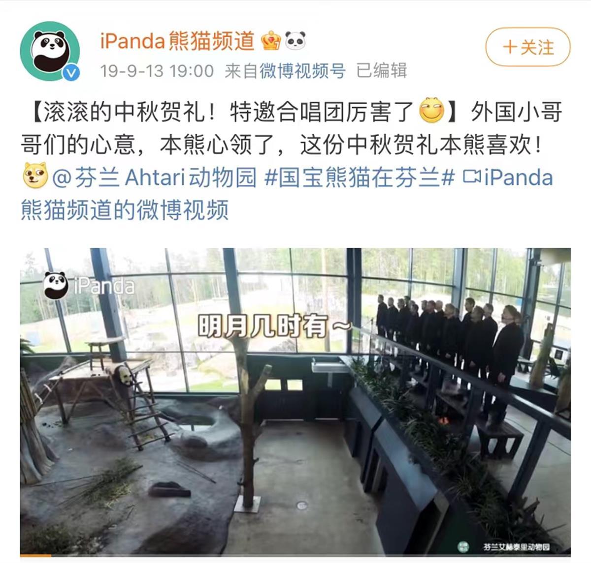 据上游新闻报道,2022年7月,一则《大熊猫在芬兰被迫思念故乡》的微博视频登上热搜。视频称,芬兰动物园怕大熊猫思乡,特意请来了合唱团演唱中文歌曲《但愿人长久》。对此,有网友调侃称,应该用四川话演唱。
