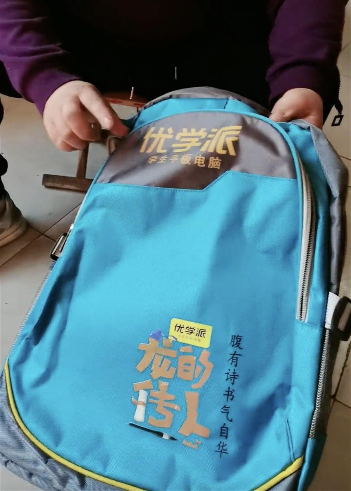 23日下午,优学派官方客服工作人员告诉极目新闻记者,学习平板出厂是不赠送书包的。李女士视频中的蓝色书包,应该是专柜或者店里的促销活动,印着字的书包也可能是店方定制的。