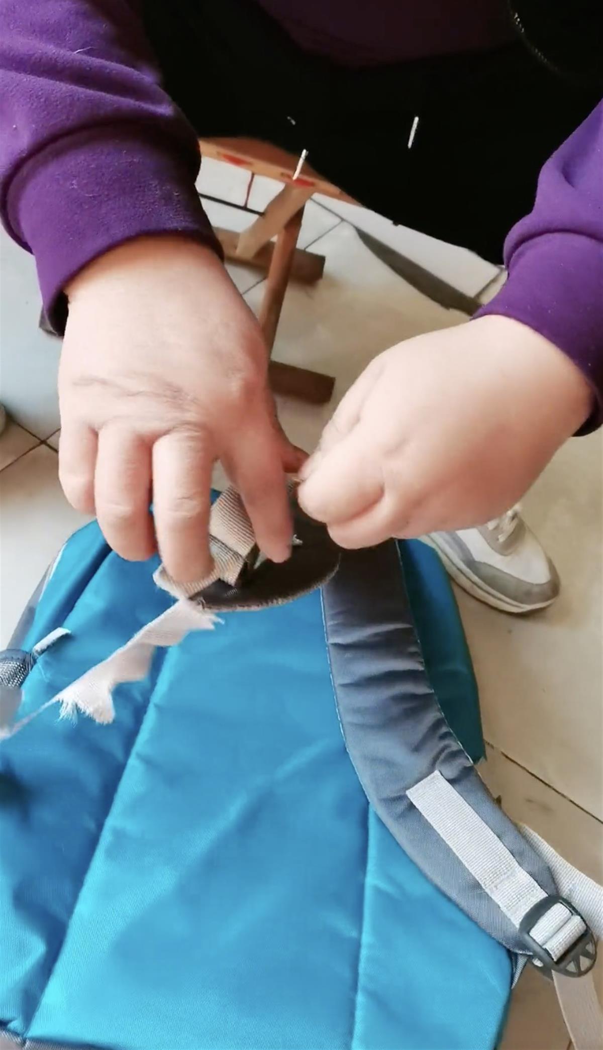 2月23日,来自山东潍坊的视频发布者李女士(化姓)向极目新闻记者介绍,这个蓝色书包,是三四年前她在专柜给孩子买学习平板电脑时的赠品。22日,因孩子原来的书包坏了,她把这个蓝色书包找出来让孩子先将就一天,没想到孩子放学回家后,她就发现书包的背带要断了。她本以为是孩子调皮弄坏的书包,用手一试才发现,这个书包带一撕就碎。