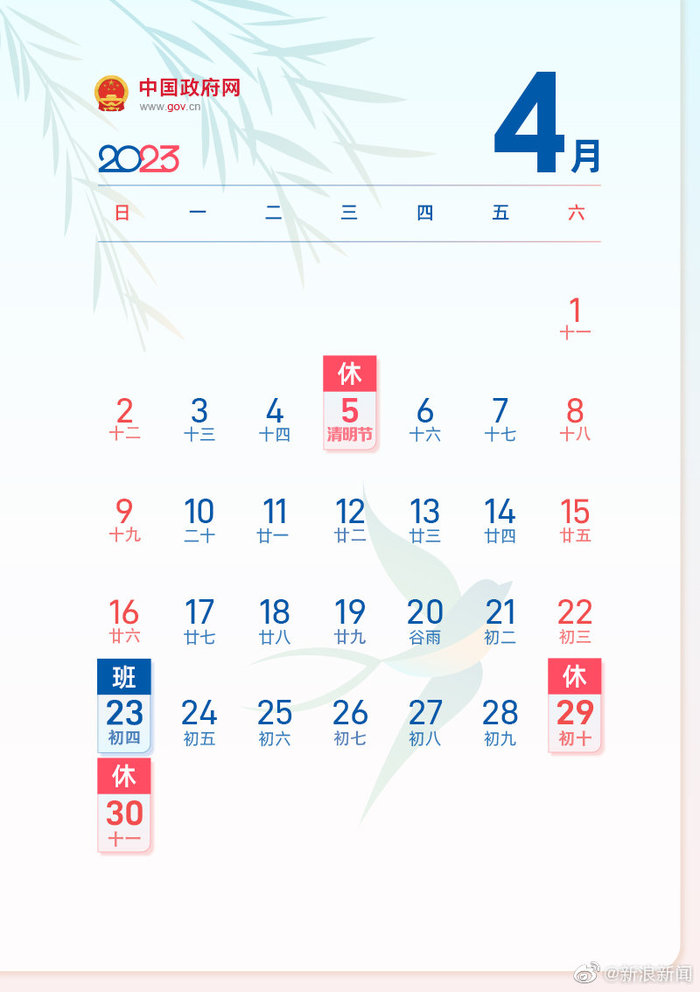 不少人感慨春节后工作节奏太快了,你是不是也已经开始期待下一次假期了?2023年清明节放假安排 ——4月5日放假,共1天,没有调休。今年劳动节4月29日至5月3日放假调休,共5天,4月23日(星期日)5月6日(星期六)上班。