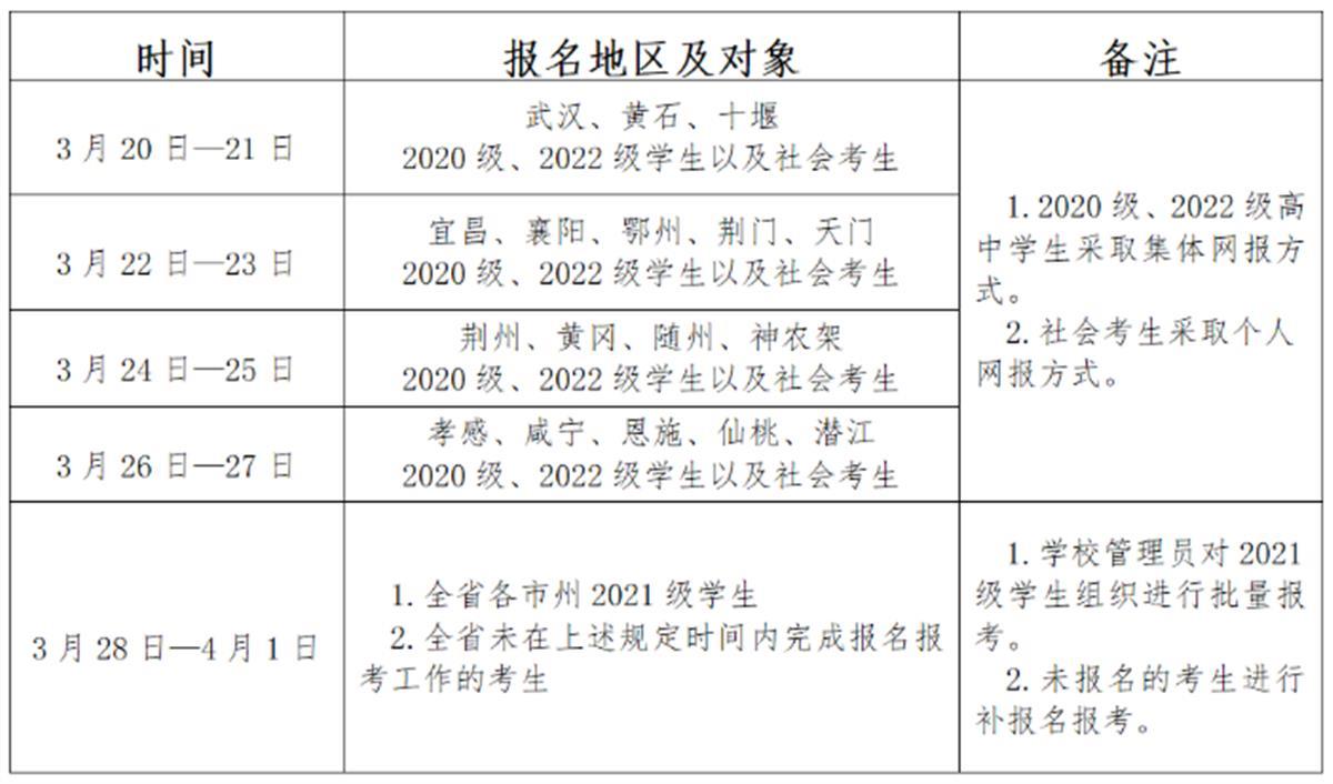 极目新闻记者2月26日从湖北省教育考试院获悉,2023年湖北省普通高中学业水平合格性考试全省统考科目考试将于3月20日开启网上报名,考试时间为7月1日至7月3日,具体安排如下: