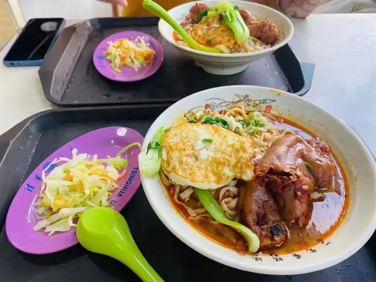 自电视剧《狂飙》走红之后,猪脚面也成为网红美食,不少高校食堂紧跟潮流,推出同款猪脚面套餐。二月中旬,清华大学永和餐厅推出《狂飙》同款猪脚面“飙飙猪脚面”。从该校学生拍的照片来看,汤汁醇厚,配料有猪脚、煎蛋、时蔬,十分丰富,面价20元,十分实惠。