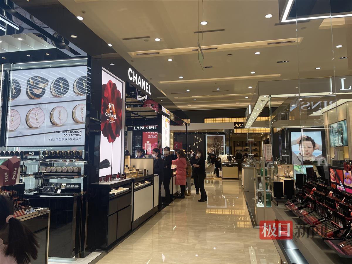 2月26日,在武汉市街道口一家商场的雅诗兰黛专柜,柜员们正忙着给顾客在手背上试面霜、试口红,还有两三位顾客站在柜台边拿着商品询价。附近的香奈儿专柜里,也有五六位顾客忙着试用商品,柜员们则站在旁边向顾客一一介绍。