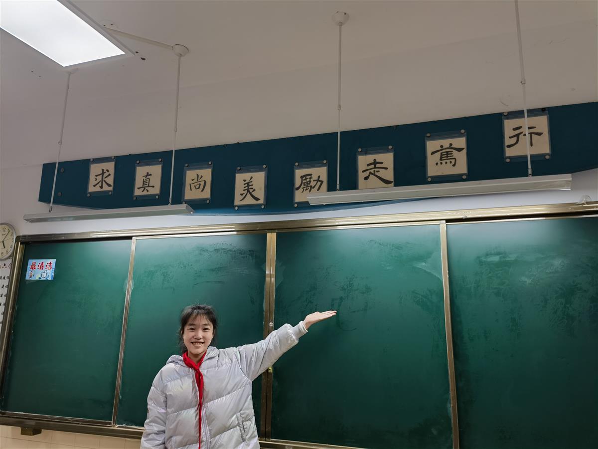 六年级(3)班学生罗语忱告诉记者:“记得五年级上学期,随着我们班教室换到老教学楼,不知道哪一天,我们突然发现黑板正上方的班训从‘做最好的自己’变成了‘读书明理,勤思益智’。从那之后,我们就在读书和思维的世界里畅游。”