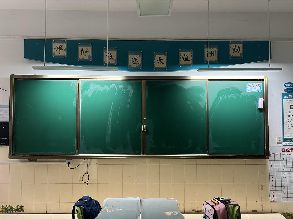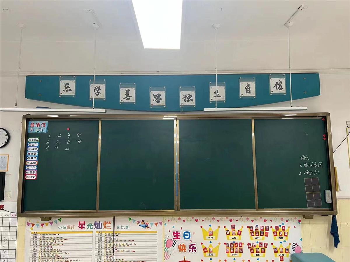 记者了解到,学校在布置黑板上方那排字的时候,考虑到一个细节,因为每到新学年班级教室可能会有变动,固定的班训移动起来就很费事。于是,学校在黑板上方设计了一排透明的方格子,可以把班训一个字一个字插进去。班级教室变动后,把字抽出来,换到新的教室就非常方便。