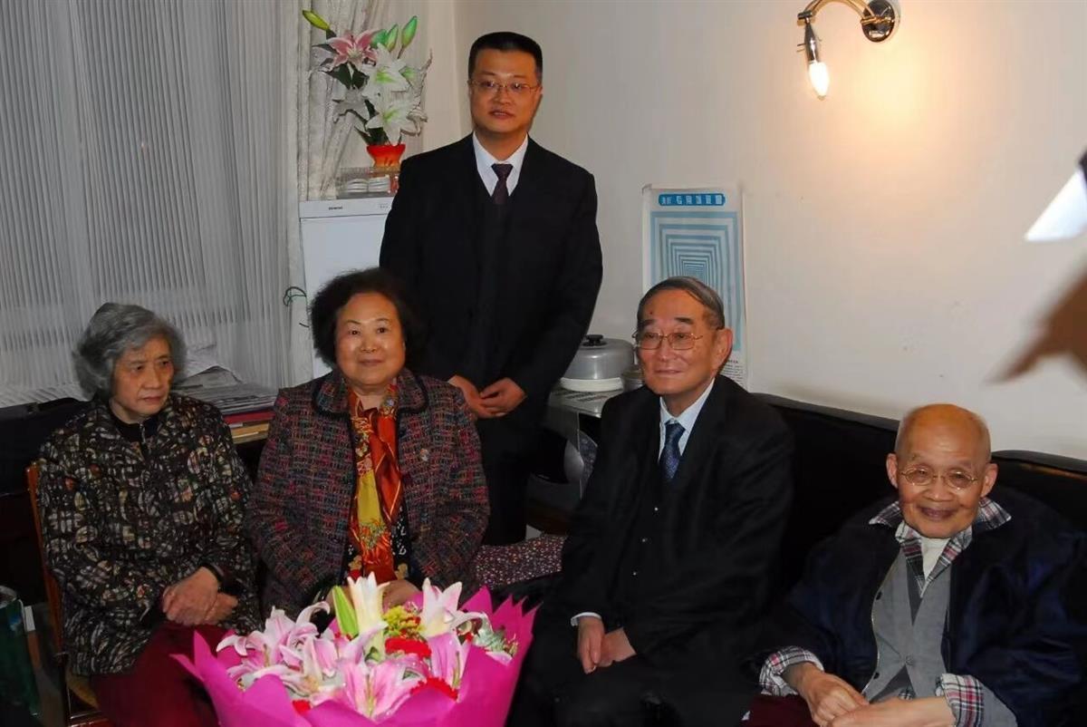 田惠敏与两位恩师张培刚(右一)、厉以宁(右二)以及两位师母合影