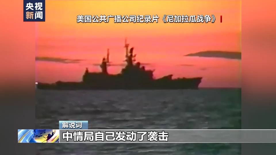 美国公共广播公司纪录片《尼加拉瓜战争》:因此,美国中情局升级了战争直接参与侵略。通过一艘海上的舰船,中情局自己组织了袭击。这份中情局的机密文件显示该机构雇用了一支拉丁美洲武装组织,实施数十项破坏活动。