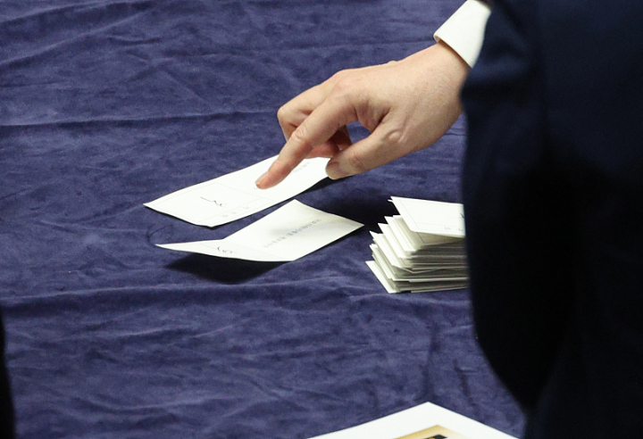 当地时间2023年2月27日,韩国首尔,在国会举行的全体会议上进行了对李在明拘捕同意案的不记名投票。此后,朝野监票委员在分类投票用纸的过程中,就2个投票用纸出现了意见分歧。